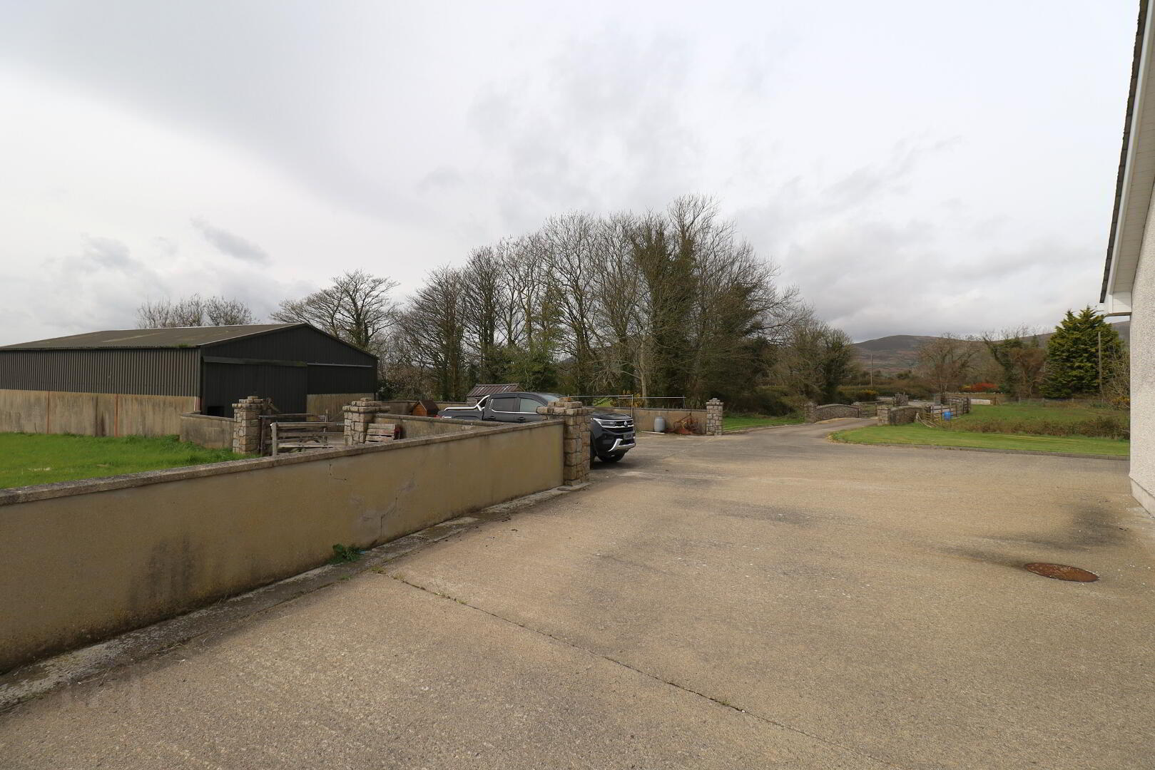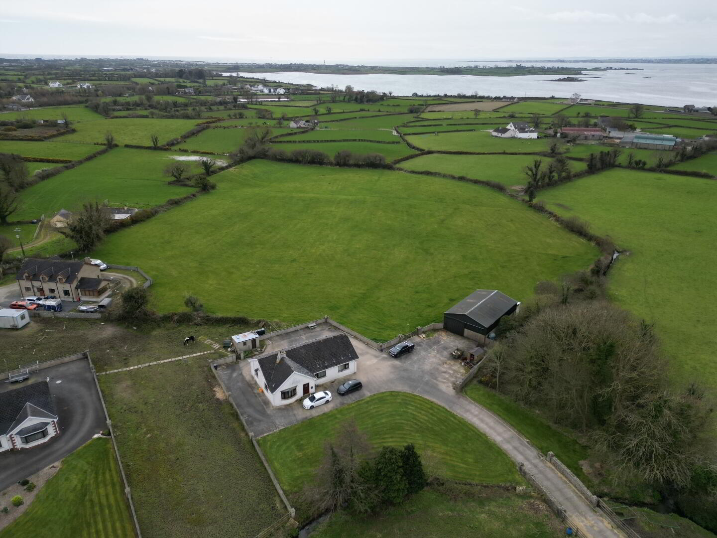 Externally the property benefits from being private, large concrete back yard, generous size lawn to the front, agriculture 46ft x 29ft shed, c. 0.5 acre and c.6.5 acre fields.