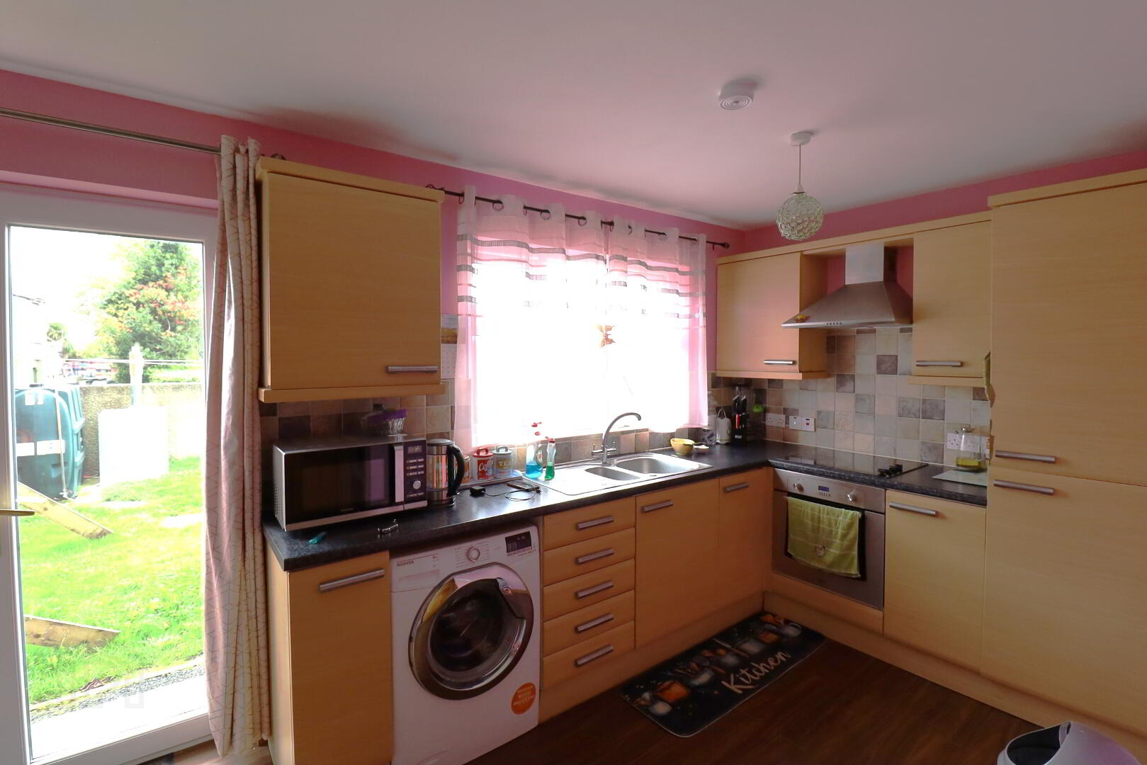 Fitted kitchen with a good range of high and low units. Integrated fridge freezer. Electric oven and 4 ring hob with extractor fan. Tiled splash back. Stainless steel sink with drainer over rear aspect window. Plumbed for washing machine. French doors leading to the rear garden. Double radiator. Double power points. Laminate flooring.