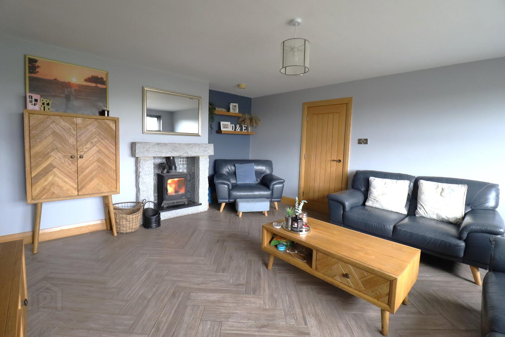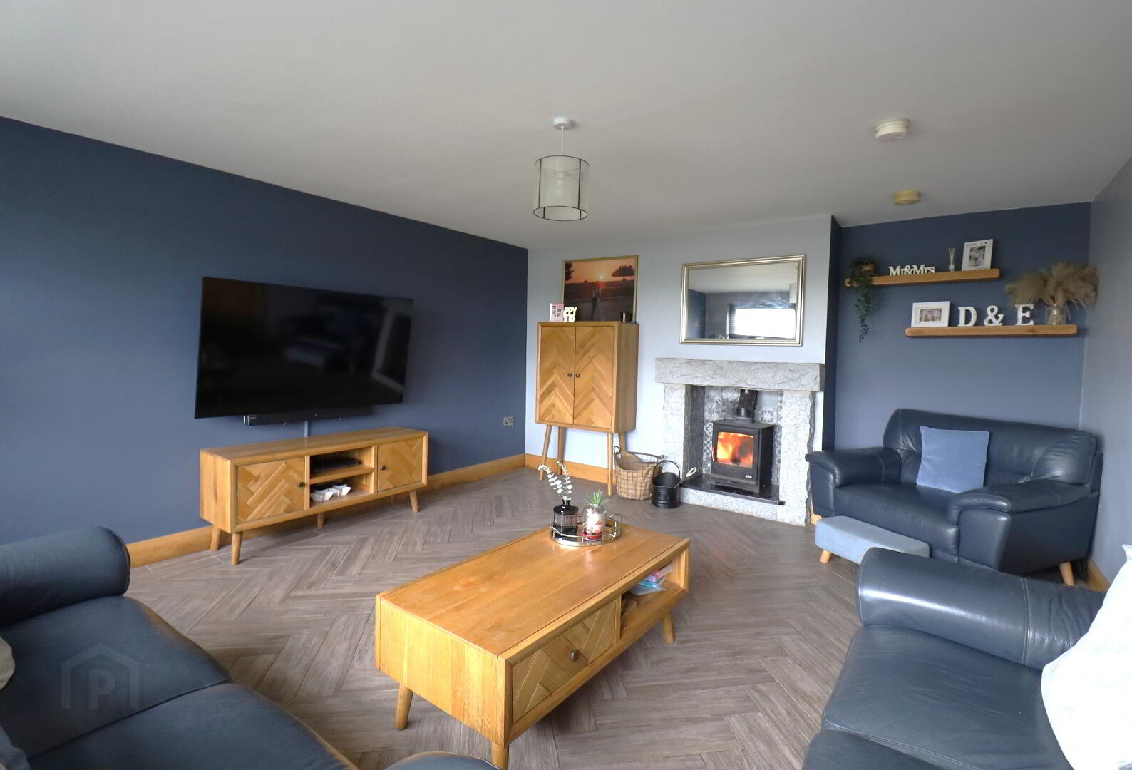 Large front aspect window. Tiled flooring. Double radiator. Granite surround with granite hearth and wood burning stove. Oak shelving. Double power points. Smoke and carbon monoxide detectors. Tv point.