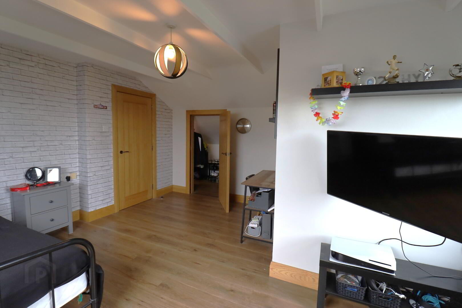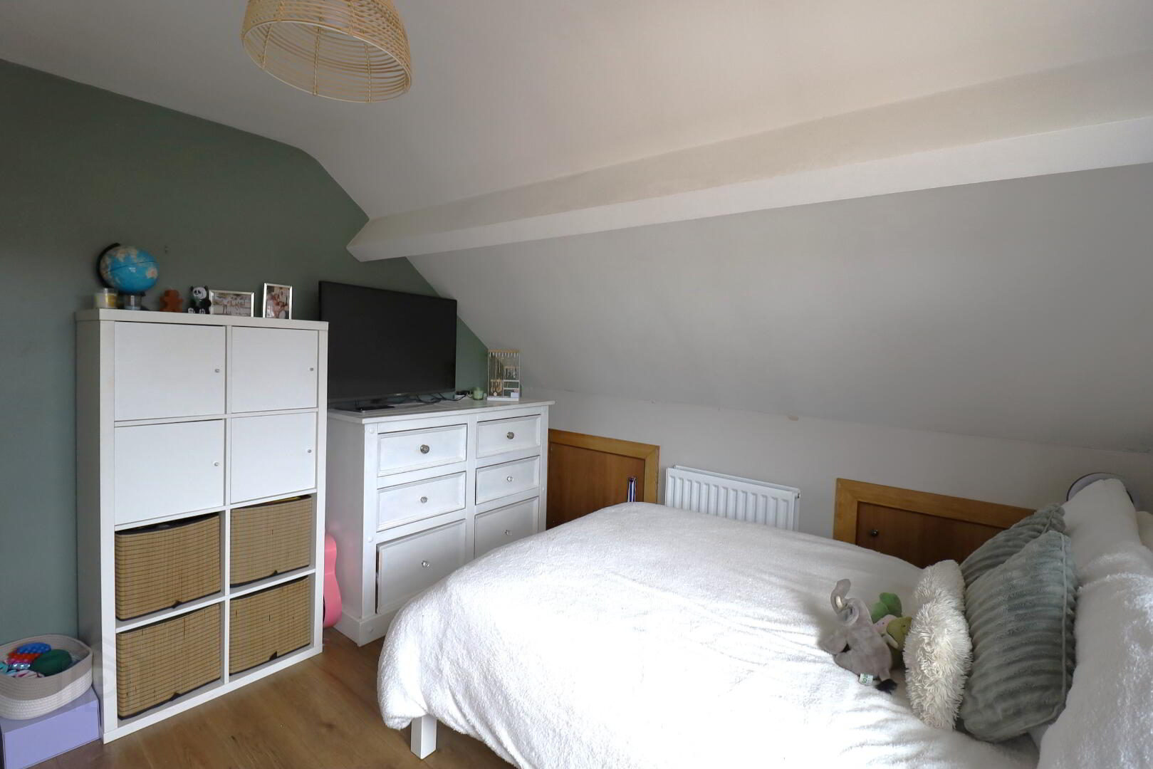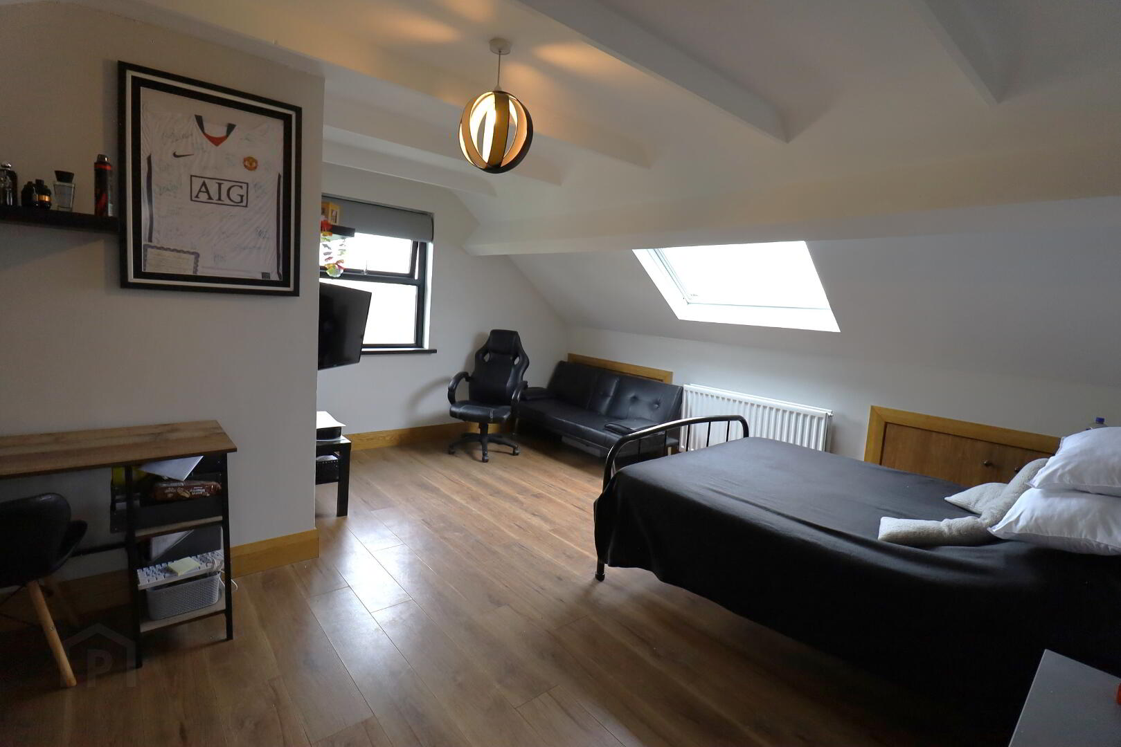 Roof window. Double radiator. Double power points. Walk  in wardrobe with shelving. Access to the eave. Laminate flooring. Tv point.