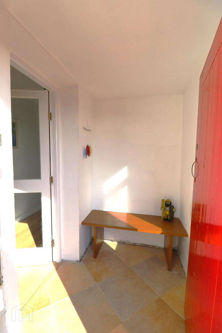 Wooden front door. Front aspect  window. Tiled flooring. Wooden bench. Glazed door to hall.