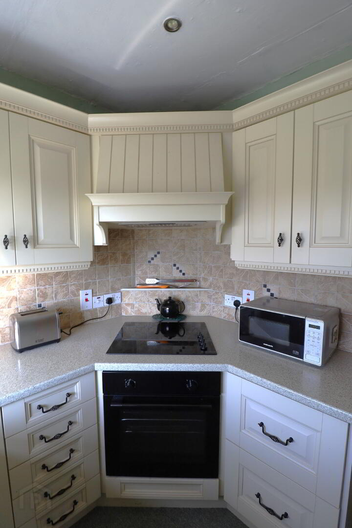 Side aspect window with sea view. Modern fitted kitchen with high and low level units. Electric  oven. Electric 4 ring hob with built in extractor fan. Single radiator. Double power points.