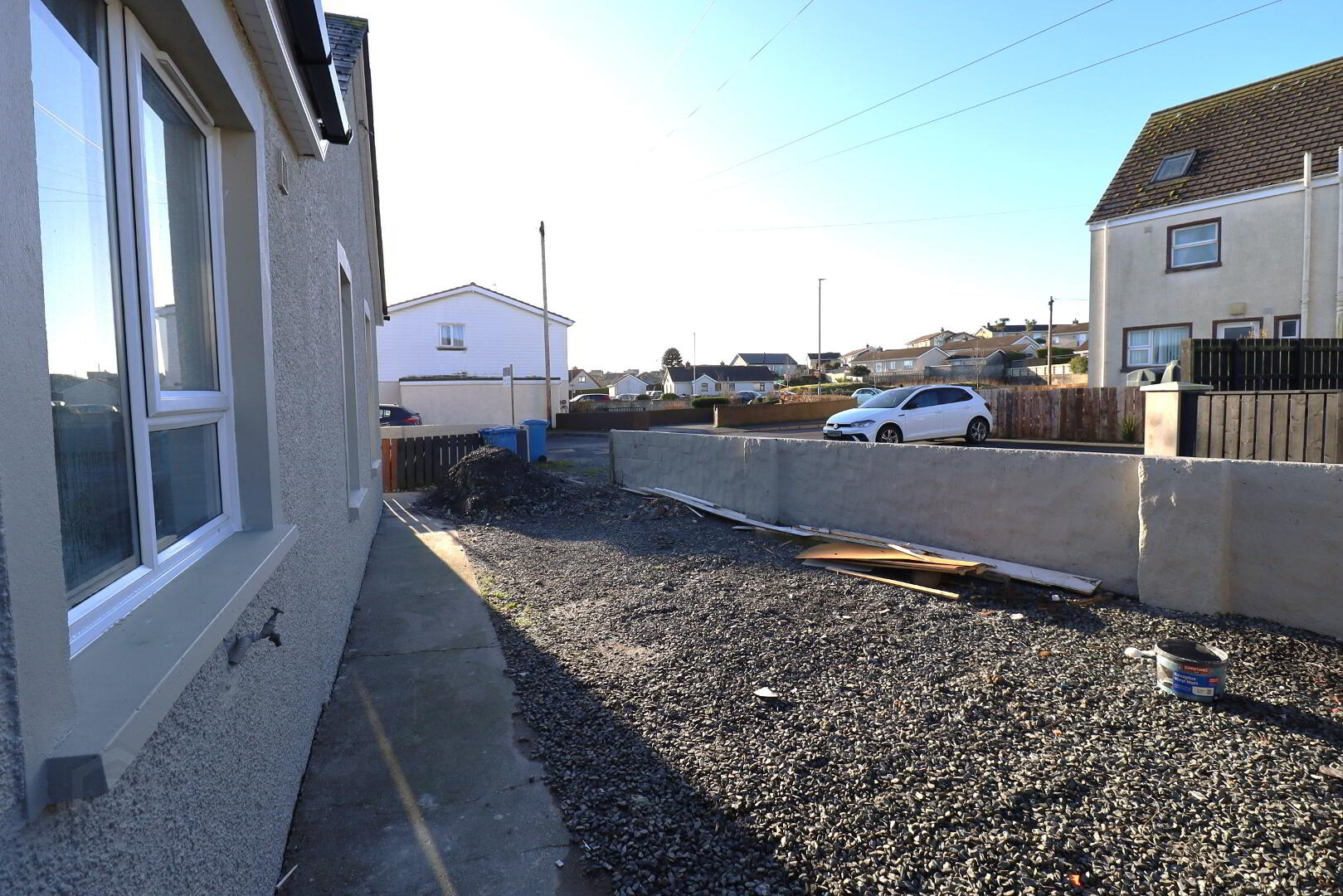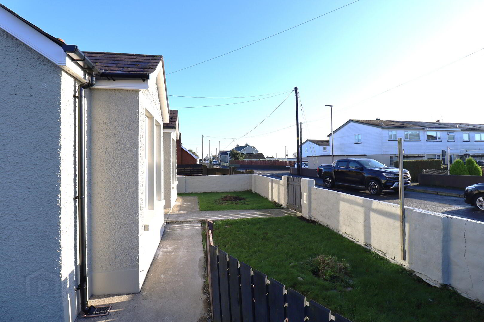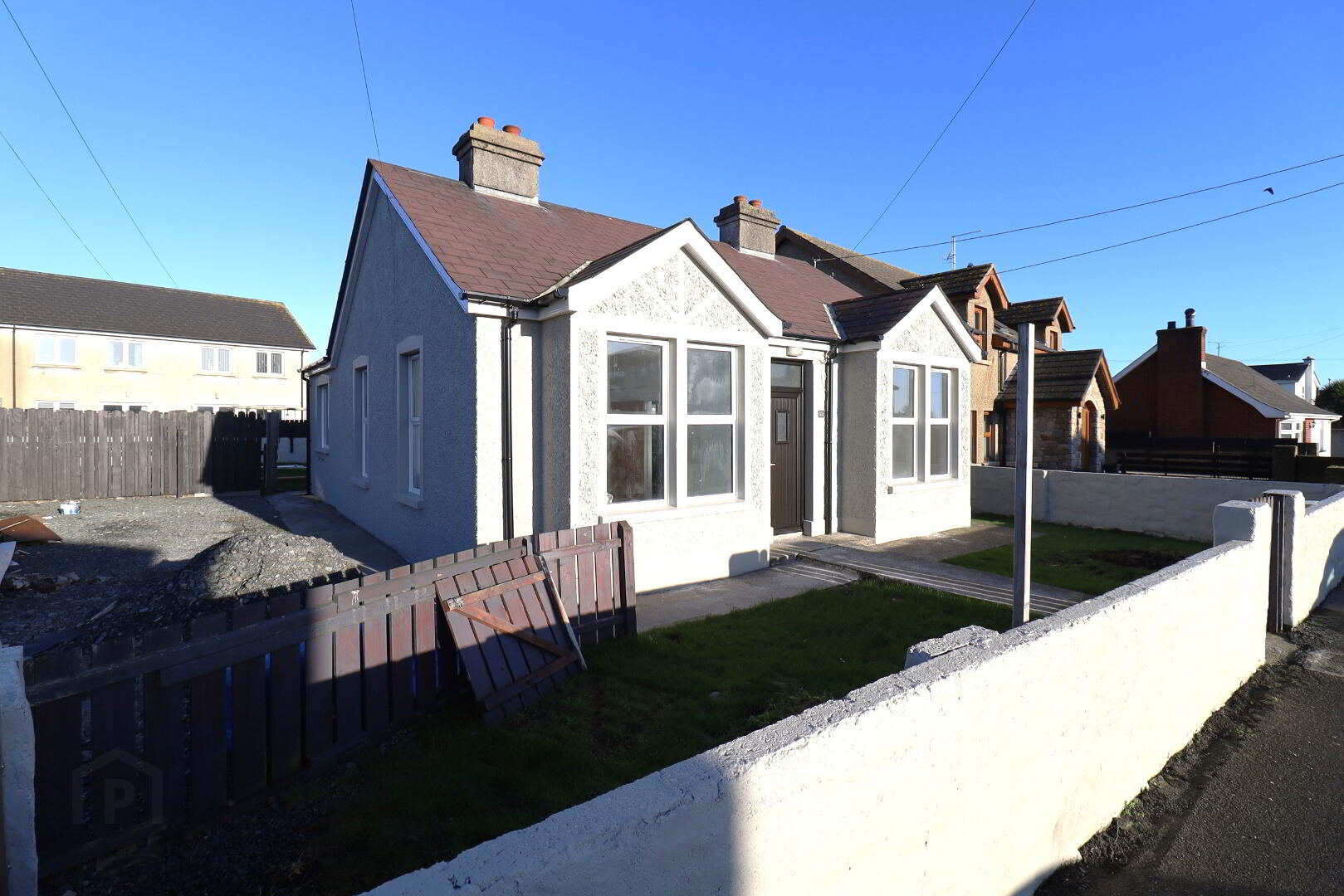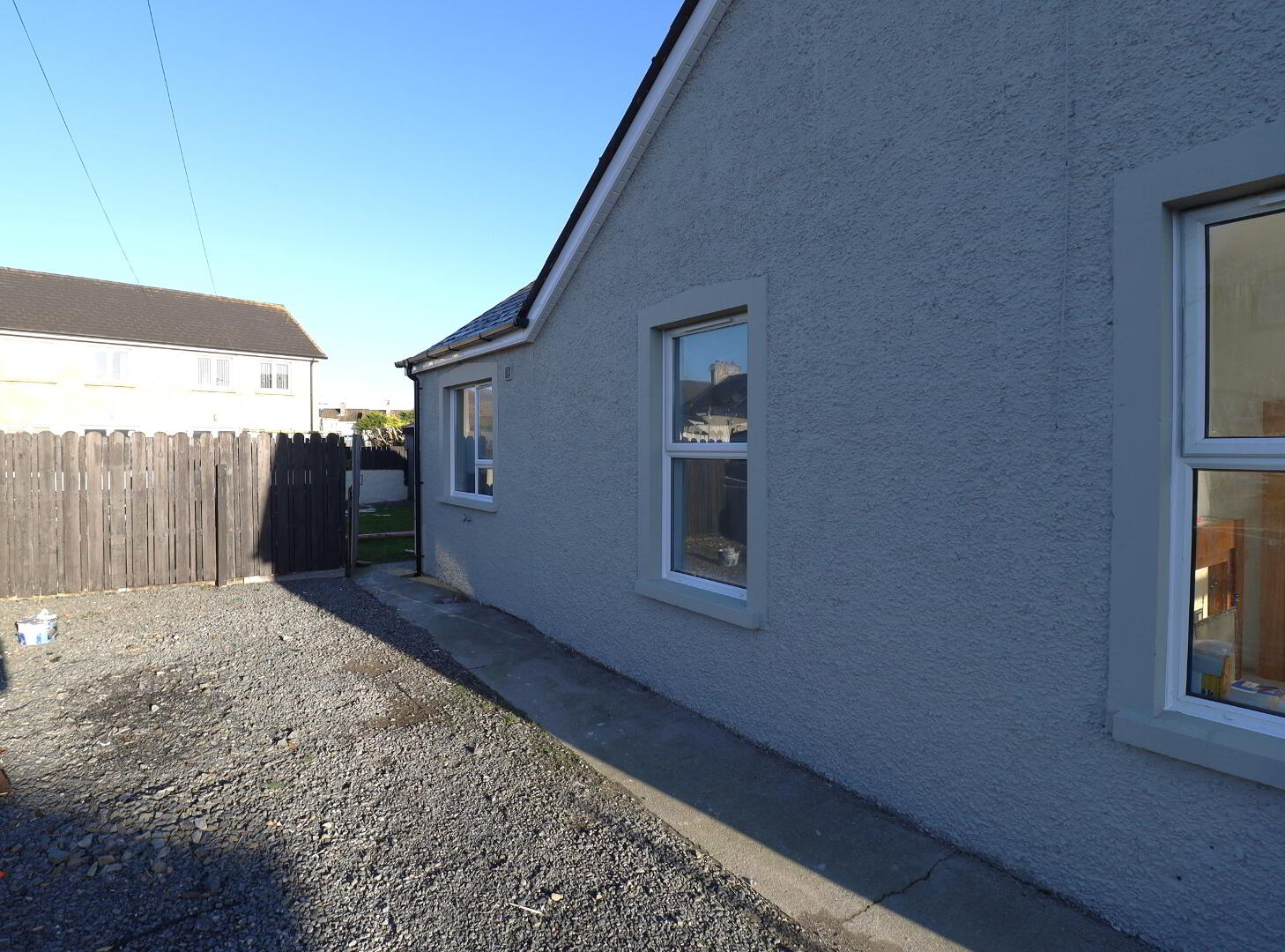 New pvc front door. Single radiator. Ceiling rose. Tiled flooring. Access to roof space. Smoke alarm. Power points. BT point.